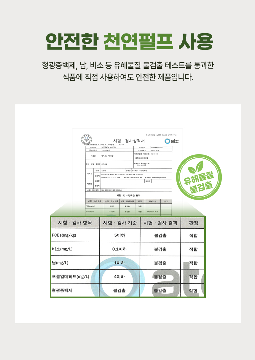 유해물질 무검출 시험까지 완료한 안전한 미트페이퍼입니다.